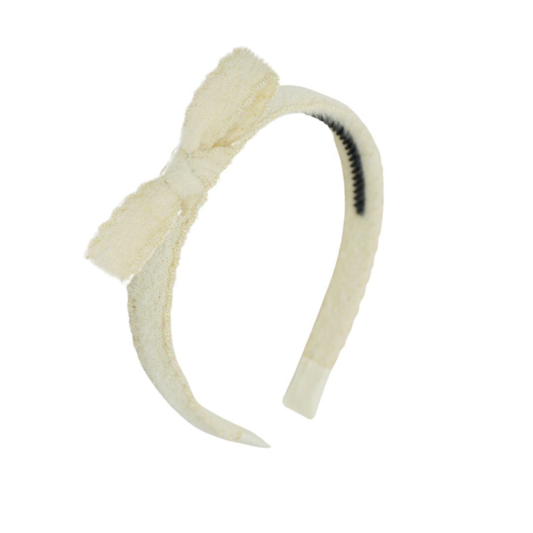 Bandeau Scalloped Mohair Bow Headband - Cream