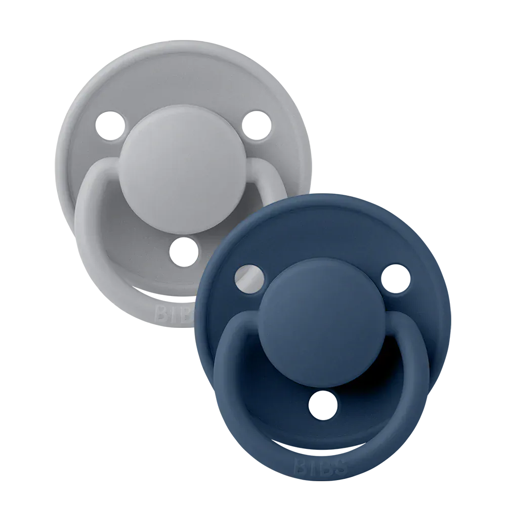Bibs De Lux Silicone Round Pacifier 2 Pack- Cloud/Steel Blue