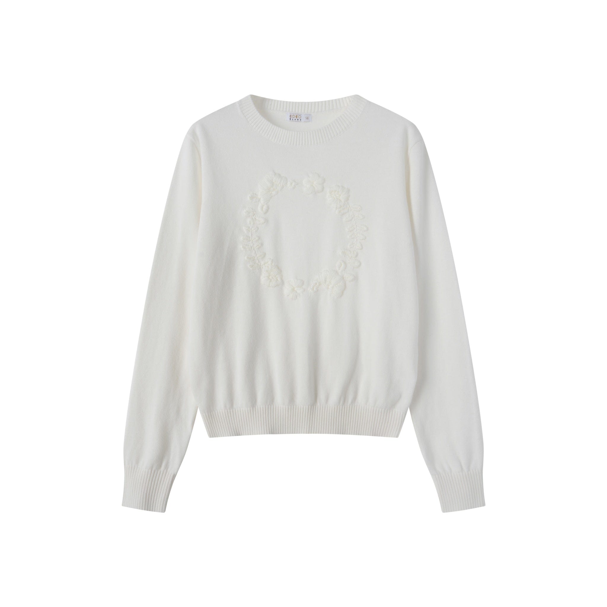 Coco Blanc Chunky Crew Sweater with Embossed Center
